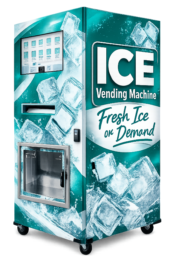 A reliable and fully automated ice vending solution that produces fresh ice on demand, perfect for busy commercial locations and profitable self-service ice vending businesses.